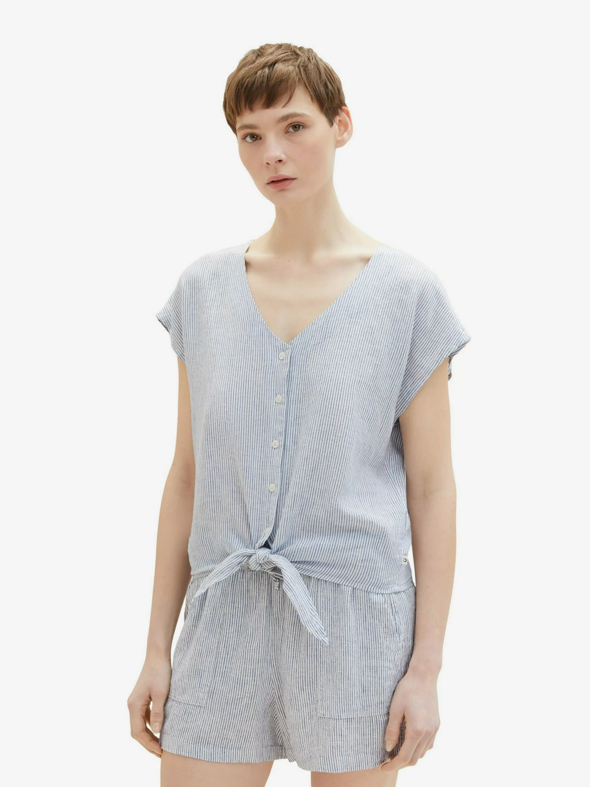 TOM TAILOR Denim Blouses à Manches Courtes Chemisier Femme Bleu