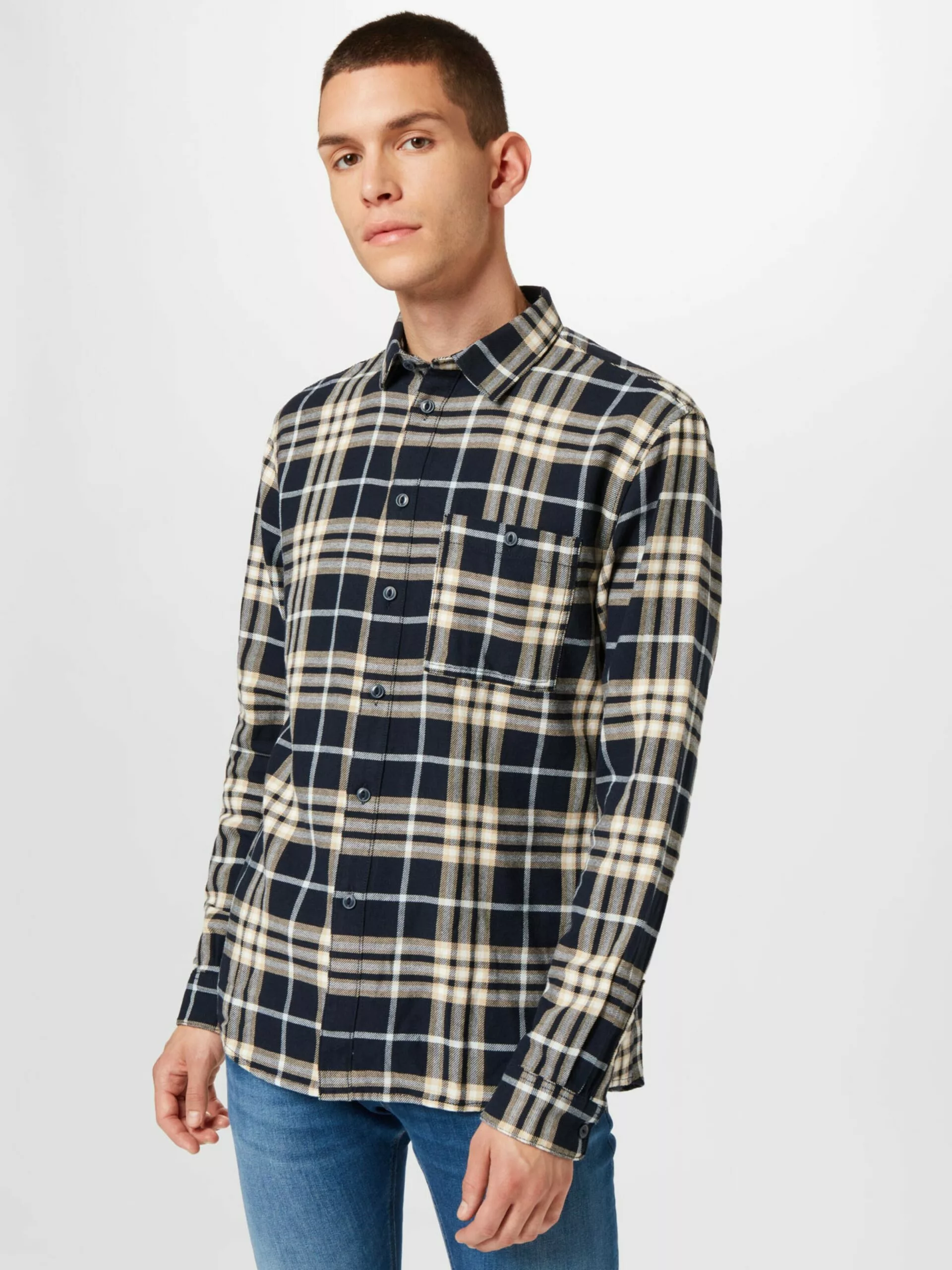 TOM TAILOR Denim Chemises à Carreaux Coupe Regular Chemise Homme Bleu Marine