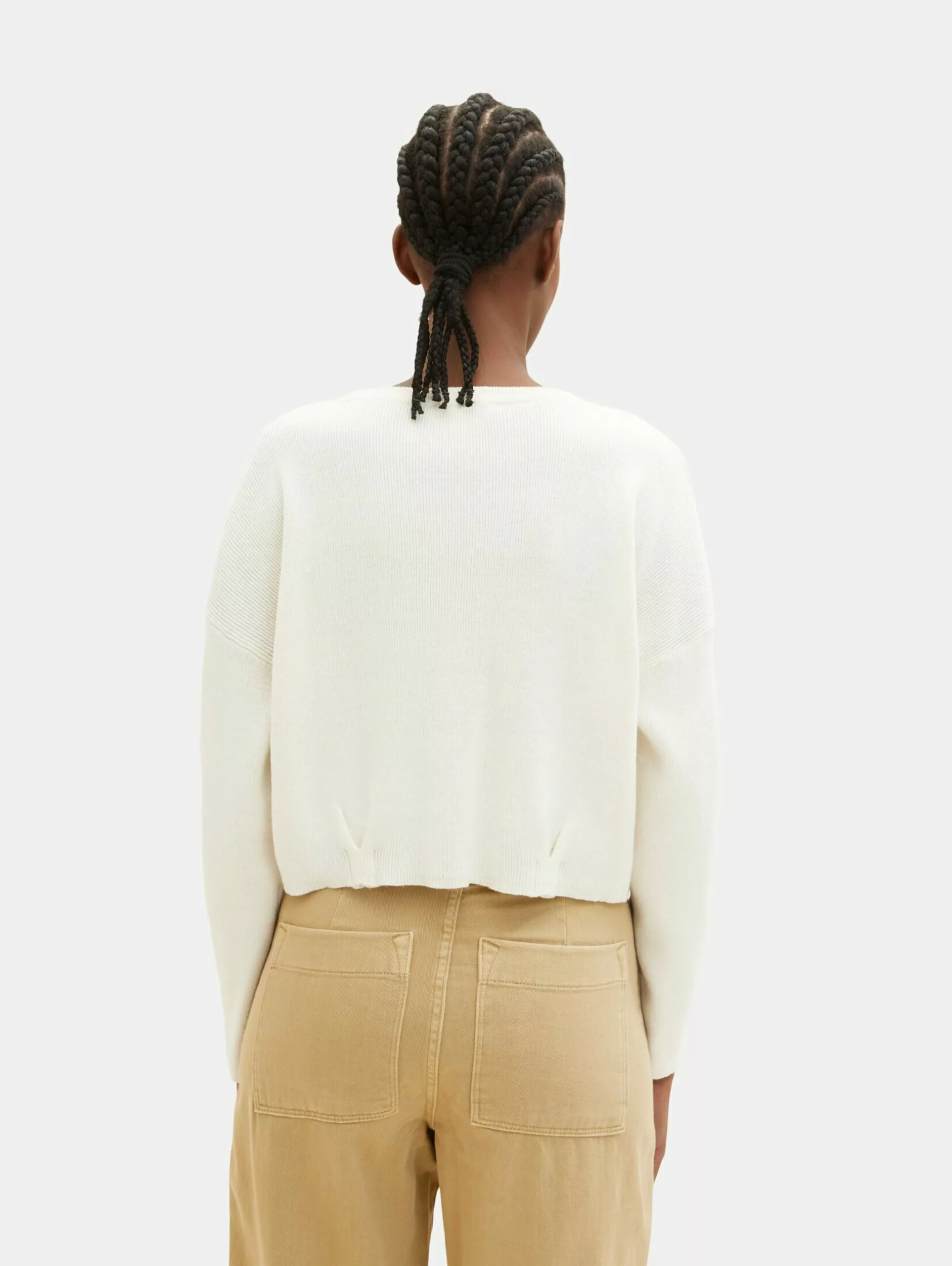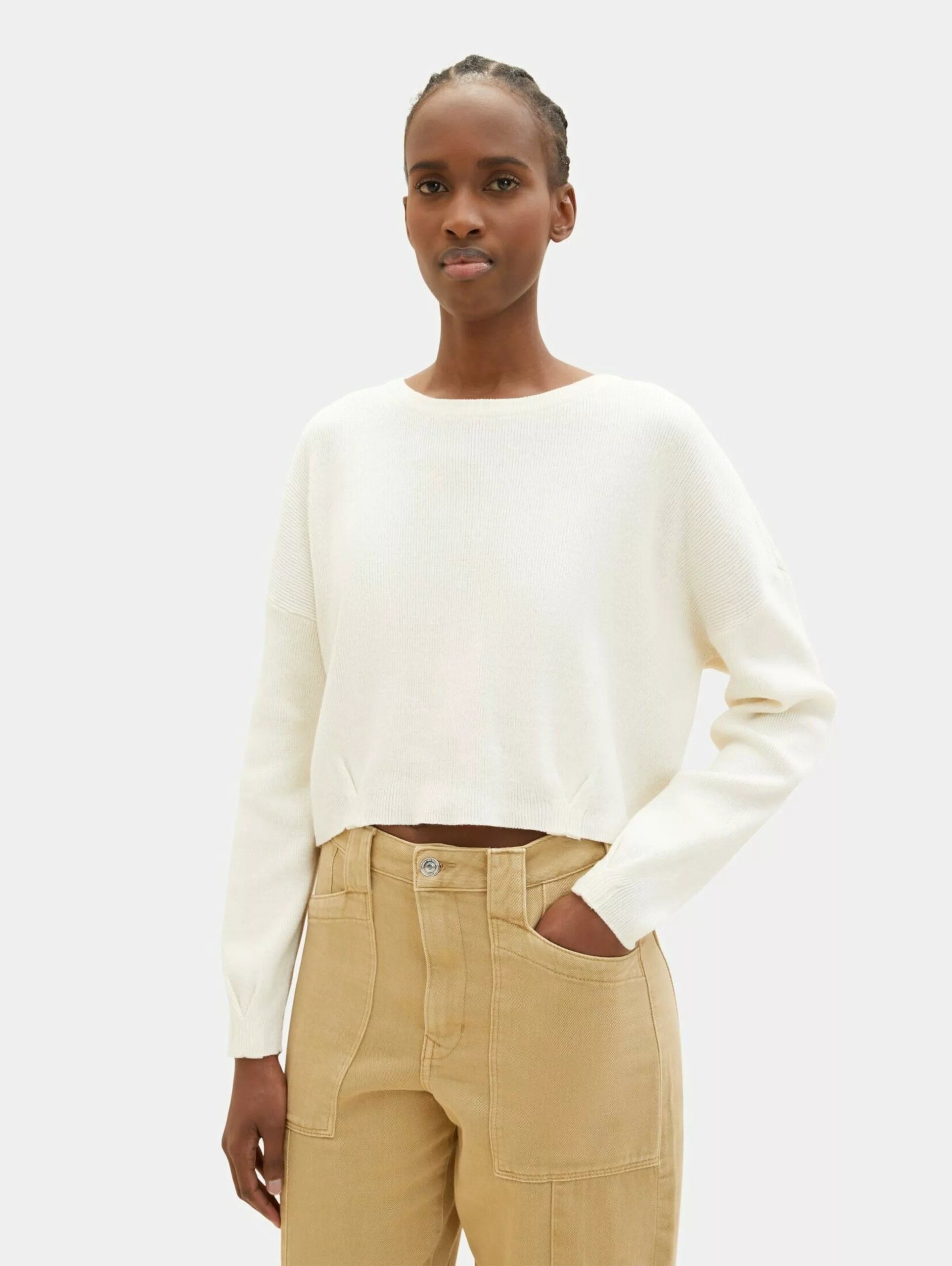 TOM TAILOR Denim Pulls Maille Fine Pull-over Femme Blanc Naturel
