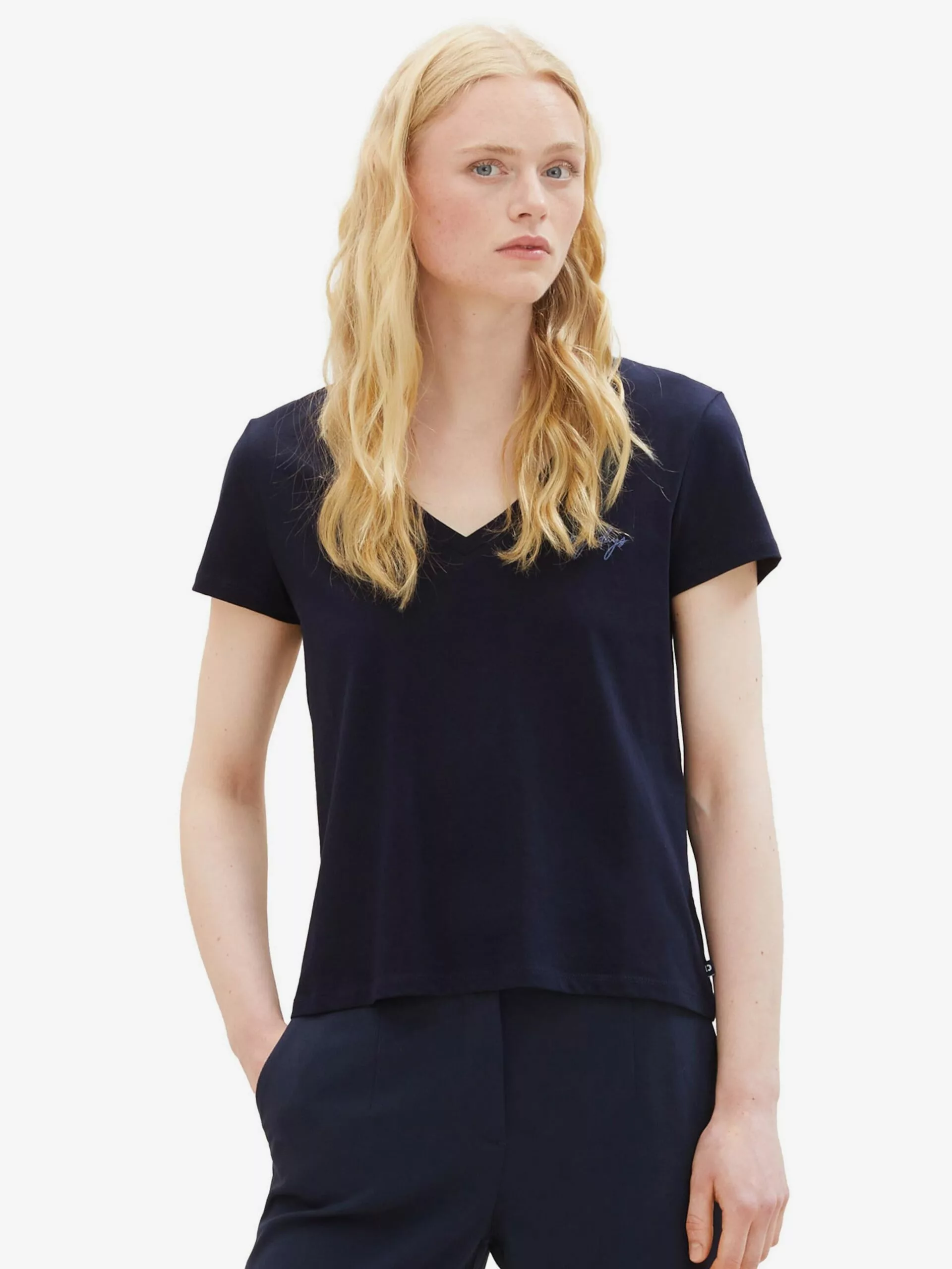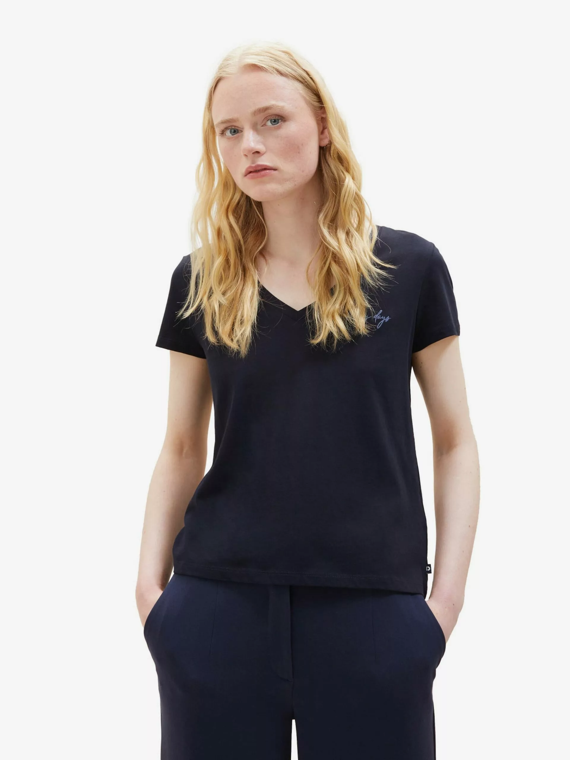 TOM TAILOR Denim T-shirts T-shirt Femme Bleu Marine / Bleu Ciel